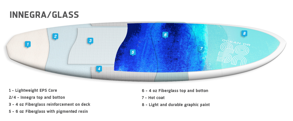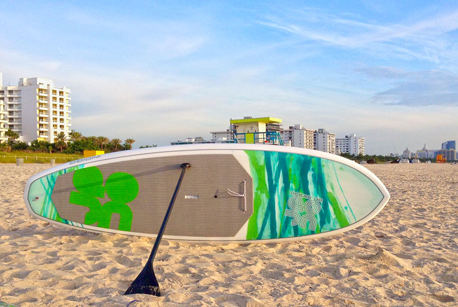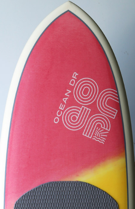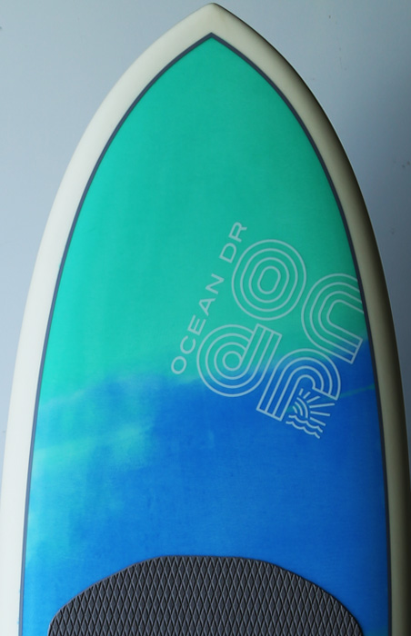 Inspired by the South Beach lifestyle. It combines art with functionality. This stable yet maneuverable board is great for beginner to expert looking for some fun in the surf. Works well in all surf but, works best in small to medium surf. The generous volume and stability allows you to use in flat water paddling as well. The color is applied during the lamination process with pigmented resin, which allowing us to create infinite color combinations.